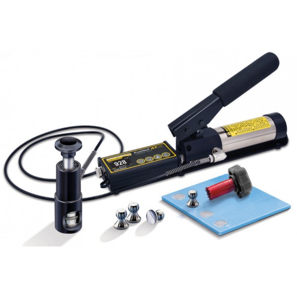 Podręczny, mechaniczny miernik do pomiaru przyczepności powłoki do podłoża Positest AT-M. Pomiar dokonywany jest metodą odrywową PN-EN ISO 4624 poprzez oderwanie przyklejonego do powłoki grzybka przy pomocy hydraulicznego siłownika. Dokładny i czytelny wynik jest podawany na wyświetlaczu LCD i oznacza przyczepność powłoki do podłoża wyrażoną w Mpa lub psi.