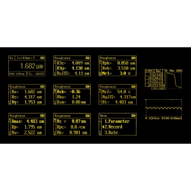 Miernik chropowatości SRT-220 pozwala na pomiar 14 różnych parametrów na różnorodnych powierzchniach. Urządzenie jest bardzo wszechstronne i nadaje się do badania obiektów wielkopowierzchniowych jak i małych elementów oraz części produkowanych maszynowo. Miernik posiada funkcję poziomowania stylusu w celu zapewnienia dokładniejszych wyników badań.