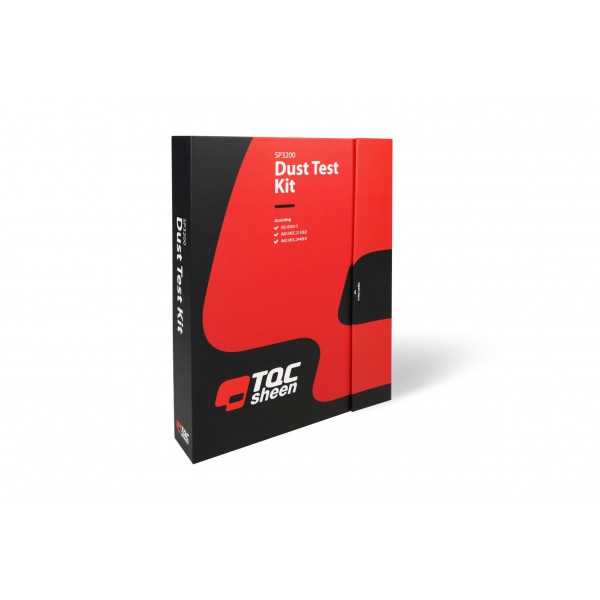 Badanie wykonuje się naklejając pasek bezbarwnej, samoprzylepnej taśmy o długości 150mm i przeciagając kilkukrotnie specjalnie skonstruowanym wałkiem o określonym nacisku (rolka nie znajduję się w zestawie). Taśmę, po zdjęciu z powierzchni, nakłada się na kontrastowe w stosunku do koloru podłoże i porównuje zagęszczenie przyklejonych cząstek ze wzorcem umieszczonym w normie, aby określić klasę wielkości zanieczyszczeń zgodnie z tablicą.