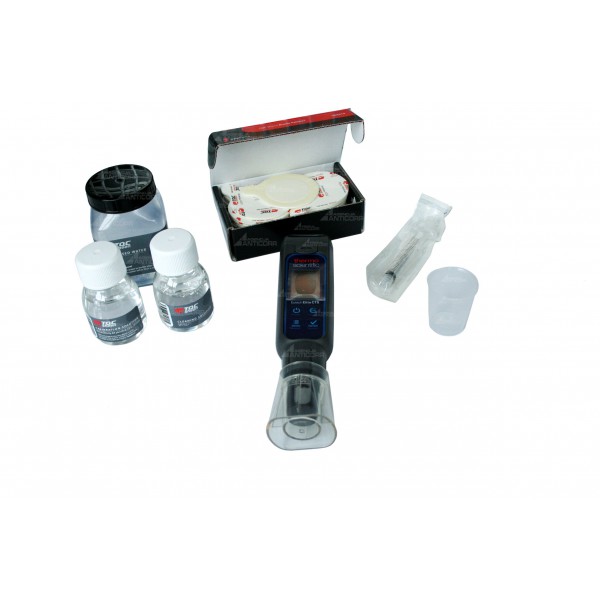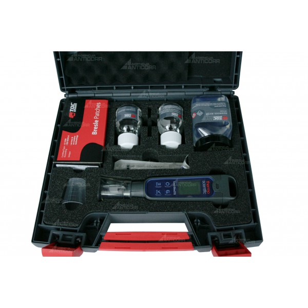 Zestaw zawiera walizkę, konduktometr, płyn kalibrujący, zestaw zlewek jednorazowych, trzy zlewki do testowania ścierniw, strzykawkę, pojemnik z wodą destylowaną, komplet 20 próbek ("łatek") Bresle'a i notatnik.
