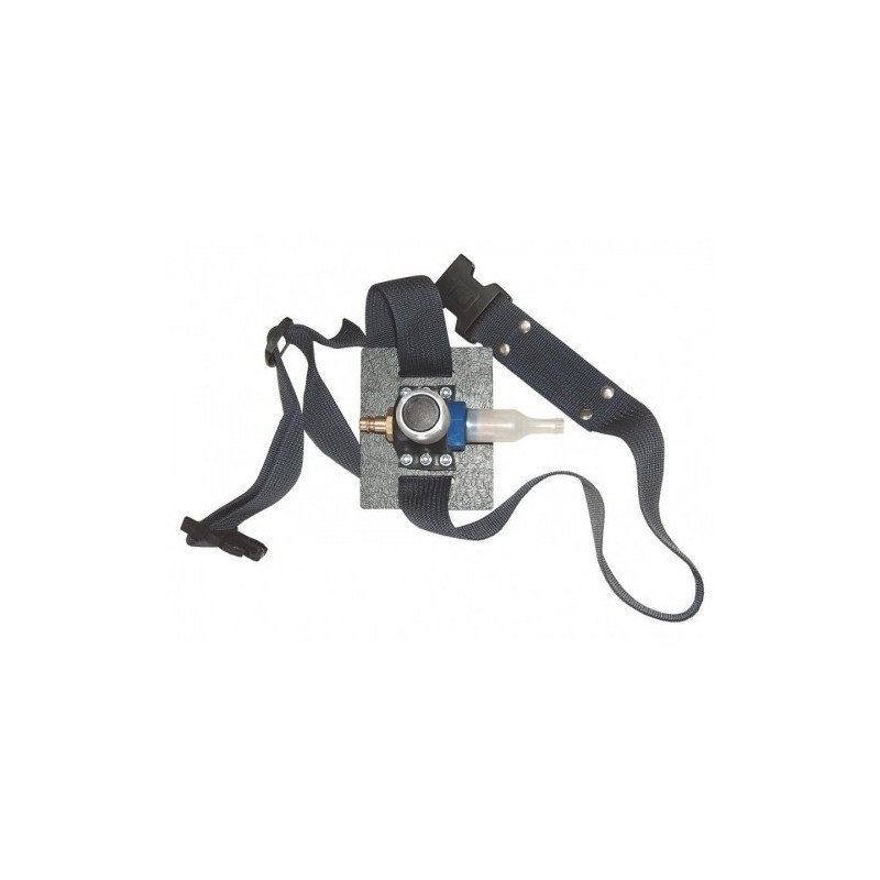 RES - URG/N składa się z zaworu z wtykiem wyposażonego w pokrętło do regulacji ilości dopływającego powietrza, złącza błyskawicznego służącego do podłączania "zasilania" (uzdatnionego powietrza), tłumika wykonanego ze spieku porowatego umieszczonego w przezroczystej "szklance" oraz pasa biodrowego, na którym zamocowany jest układ regulacyjny.