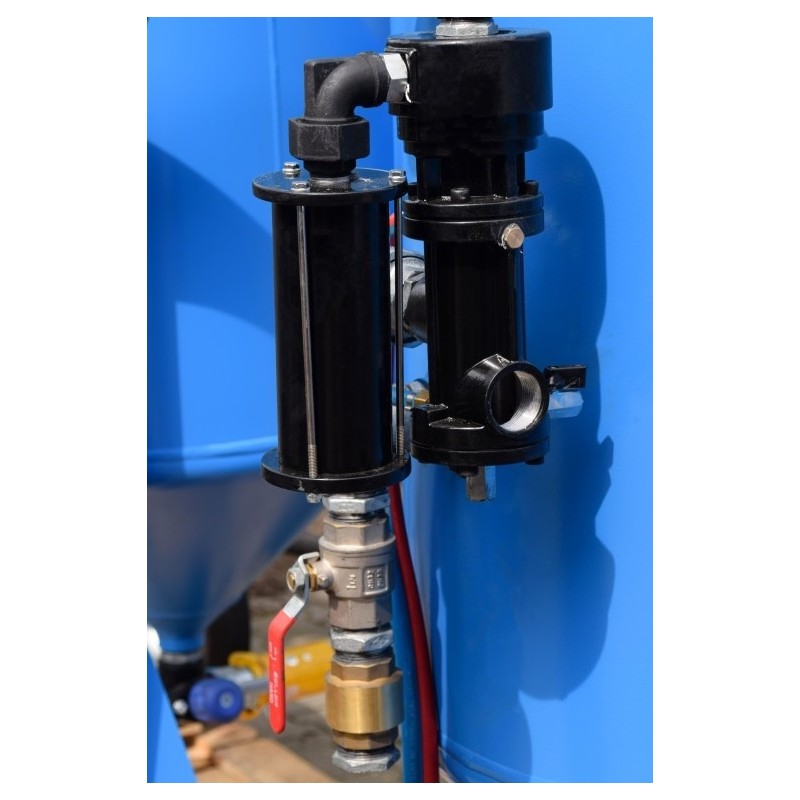 Układ typu RMC-2000 firmy ANTICORR TestAn składający się z pneumatycznego zaworu, tłumika bez dźwigni sterującej. Służy do dekompresji zbiornika piaskarki na odległość do 40 metrów.