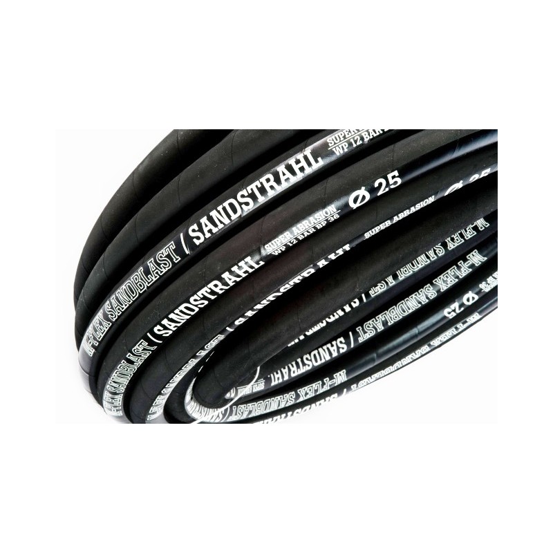 Wysokiej jakości wąż M-FLEX do ścierniw, piaskowania o średnicy wewnętrznej 19mm, 25mm i 32mm i grubości ścianki 7mm. (wąż 19mm,25mm) oraz 8mm (wąż 32mm) Warstwa zewnętrzna i wewnętrzna z gumy antystatycznej, odpornej na ścieranie < 60 mm3. Ciśnienie pracy 12 bar. Ciśnienie rozrywające 35 bar. Cena podana za 1 metr. MINIMALNE ZAMÓWIENIE - 5 metrów. Każde kolejne co 5 metrów.