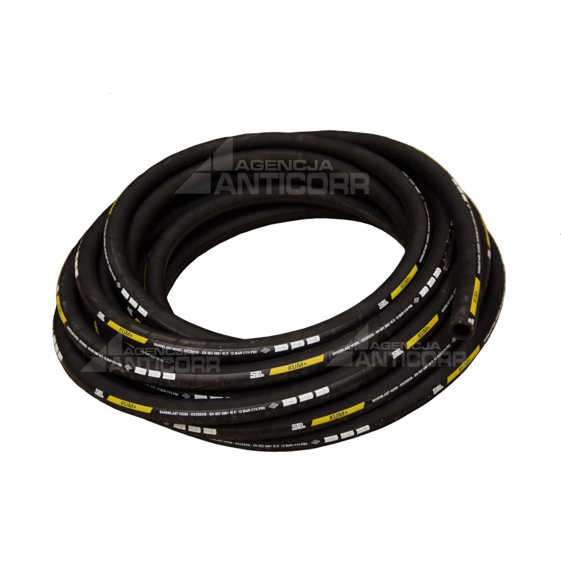 Wysokiej jakości wąż KUM+ do ścierniw, piaskowania o średnicy wewnętrznej 19mm, 25mm i 32mm i grubości ścianki 7mm. (wąż 19mm,25mm) oraz 8mm (wąż 32mm) Warstwa zewnętrzna i wewnętrzna z gumy antystatycznej, odpornej na ścieranie < 35 mm3. Ciśnienie pracy 12 bar. Ciśnienie rozrywające 36 bar. Cena podana za 1 metr. MINIMALNE ZAMÓWIENIE - 5 metrów. Każde kolejne co 5 metrów.