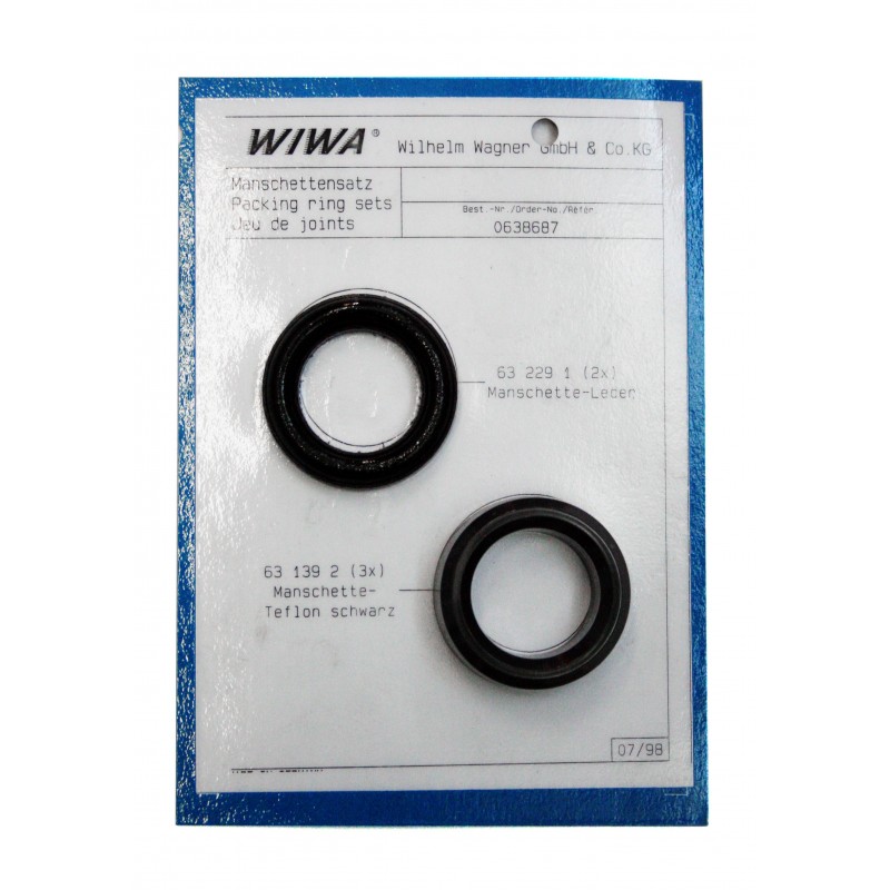 Zestaw uszczelnień mieszanych 24071 do pomp malarskich WIWA PROFESSIONAL. Zestaw składa się z uszczelek skórzanych i teflonowych.